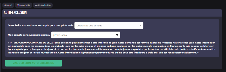 - Suspension temporaire : via l’option d’auto-exclusion dans votre espace client.